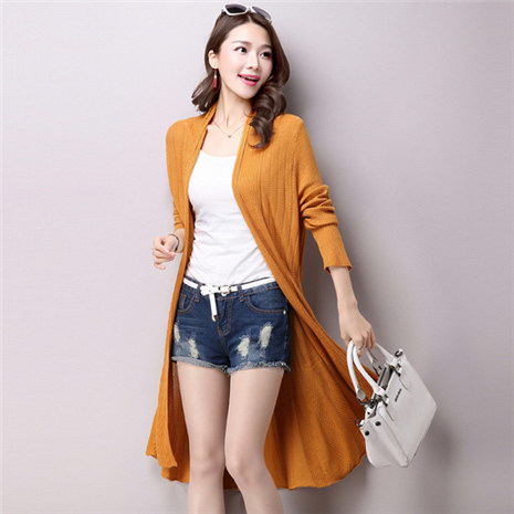 长款长袖开衫毛衣外套