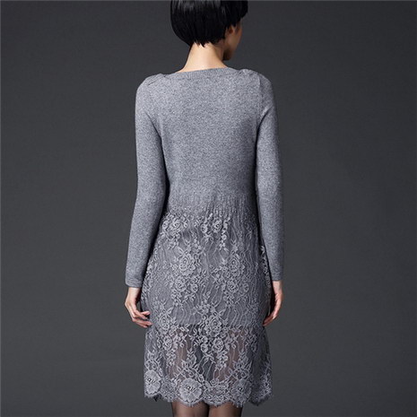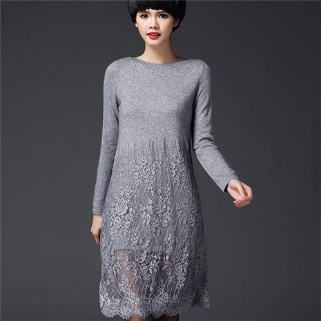 长款蕾丝套头打底毛织连衣裙